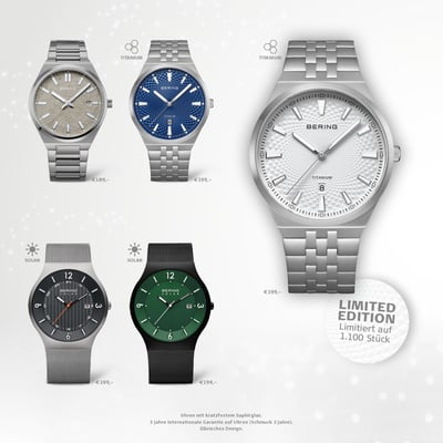 Bering steht für Minimalismus, Qualität und Langlebigkeit. Inspiriert von der arktischen Schönheit vereinen die Kollektionen kühle Eleganz mit modernen Details. Ob Uhr aus kratzfestem Saphirglas oder Schmuck in Edelstahl und Keramik – jedes Stück ist ein Ausdruck von Stil und Beständigkeit.